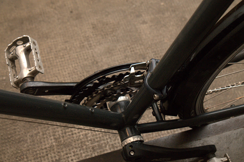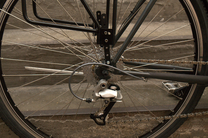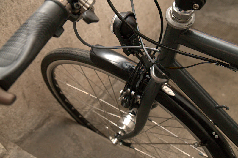 ... und immer noch der alte Rahmen, wenn ich das ein wenig früher gewusst hätte, hätte ich das Fahrrad nicht vor kurzem demontiert. Aber so wurden die Teile wieder gesäubert, das Vorderrad hat nun einen Nabendynamo und ein recht exzellentes Licht. Einige ältere Teile für die Schaltung steuerte ich preiswert bei und Magura HS33 sind nun als Bremsen montiert. Alles zusammen waren das rund 550Euro für den Kollegen, da bekam man bei ALDI vor kurzem mehr als zwei komplette Fahrräder dafür :-) und so schraubten wir zu zweit einen halben Sonntagnachmittag im Hinterhof.