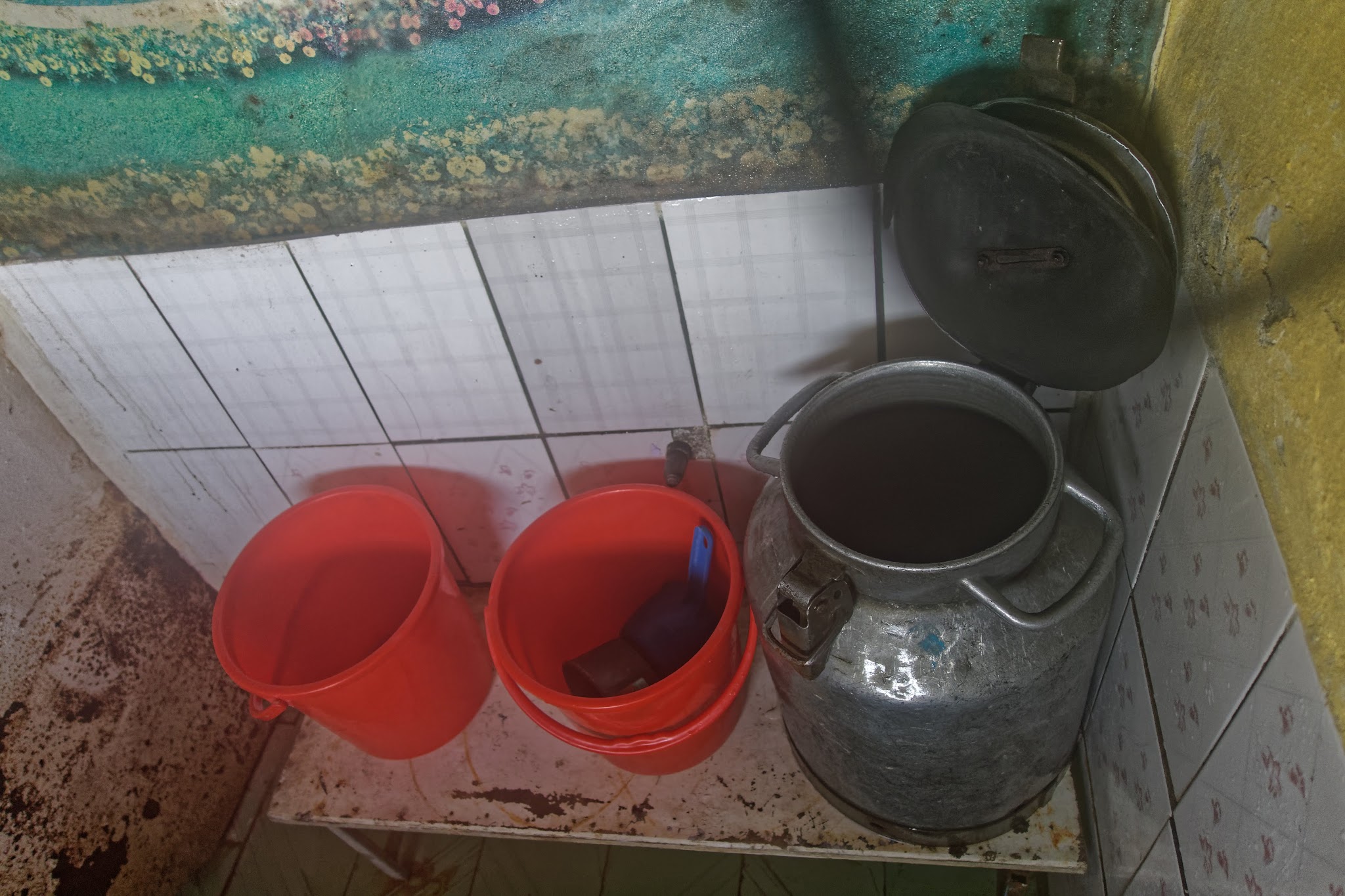 Why a 20 year old picture of her is displayed in the Karakul shower, I guess the only shower in the village, is a mystery...