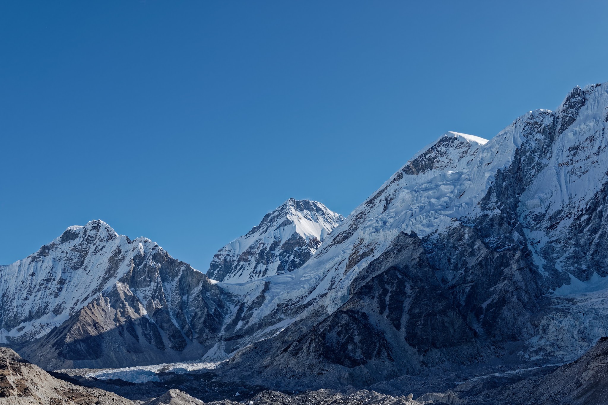 Khumbu glacier and Thamserku in the middle, Taboche to the right.