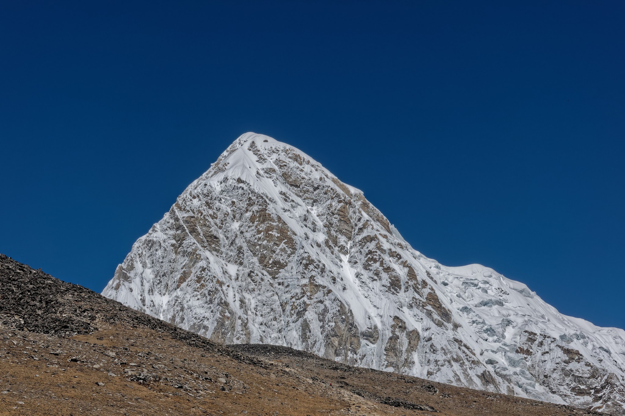 Pumari and Kala Patthar, the small grass hill in front (5545m).