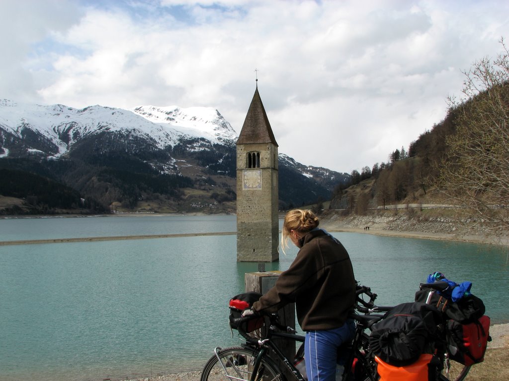 Heimfahrt von Innsbruck mit dem Zug nach München. Bis 9 oder 10 am Morgen waren ein paar dünne Handschuhe angesagt. Regen ist um diese Jahreszeit noch ein wenig unangenehm aber da hatten wir ausser an einem Vormittag nicht viel. Kilometermässig haben wir uns nicht soweit rausgelehnt 166km bis Imst, 112km nach Prad, 98km bis zum Kalterer See (Regen), 145km nach Lazise und schliesslich 75km am letzten Tag nach Verona und den Brenner runter. Die Zeltplätze waren offen und kosteten so rund 16 Euro für 2 Personen mit Zeltstellplatz, da hat schon die Hauptsaison begonnen. Ein paar Radler mit Gepäck waren auch schon unterwegs, neben den vielen edlen italienischen Rössern auf dem Etschradweg zwischen Bozen und Rovereto. Der wird auch von den heimischen Rennradfahrern gut angenommen. Wir sind dann lieber bei Gelegenheit ein wenig in die Dörfer am Rande des Etschtales abgewichen, denn der Radweg ist hin und wieder etwas eintönig. Na und am Gardasee ist um diese Zeit eh schon alles aktiv. Meist aber Tagesausflügler. Auf den Caravanplätzen, Zeltplätze kann man sie ja fast nicht nennen, waren wir, bis auf ein paar Motorradfahrer am Kalterer See, noch die Ausnahme.