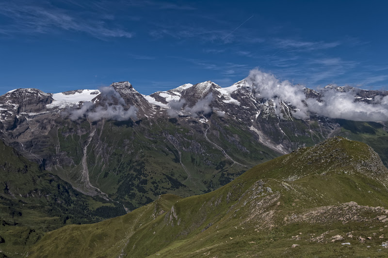 ein verlängertes Wochenende bot sich über Maria Himmelfahrt dieses Jahr an. Am Samstag um 10 nach einem gemütlichen Frühstück in München bis Fusch an der Großglocknerstraße, über Oberaudorf, Walchsee, Erpfendorf, Pillerseetal, Leogang und Saalfelden wurdens dann doch knapp 200km. Am nächsten Morgen bald raus und zum Fuscher Törl und runter auf einen Teller Kaspressknödel beim Mankeiwirt an der Fuscherlacke. Es folgt das Hochtor und eine Abfahrt nach Heiligenblut, dort hat der kleine Supermarkt auch Sonntags offen, der Schwung genügte dann über den Iselsberg nach Lienz und noch bis Matrei hinauf. Abends dann Gewitter. Am nächsten Tag hoch ins Defereggen und zum Stallersattel, wobei ich im Cafe Tyrol in St Jakob einen taktischen Halt einlegte mit Kaffee und Apfelstrudel um das Zeitfenster für die Abfahrt vom Stallersattel zu erwischen: jeweils die erste Viertelstunde also 10.00-10.15 z.B. ist die Einbahnstrasse für die Abfahrt ins Antholzer Tal offen. Bei Wärmegewittern fuhr ich über Bruneck durchs Pustertal und das Eisacktal bis Sterzing. Von dort sinds ein paar Höhenmeter hoch ins Pfitschtal und die letzten paar Kilometer dann ungeteert zum Pfitscher Joch, das ich vor dem grossen Ansturm aus Süden erreichte und vormittags eine Speckknödelsuppe löffelte. Dank der Heerscharen an Wanderern war an eine Abfahrt zum Schlegeisstausee nicht zu denken, so dass ich den grössten Teil der Strecke schieben musste. Die Abfahrt ins Zillertal war dann schnell und problemlos mit relativ wenig Verkehr zur Mittagszeit.