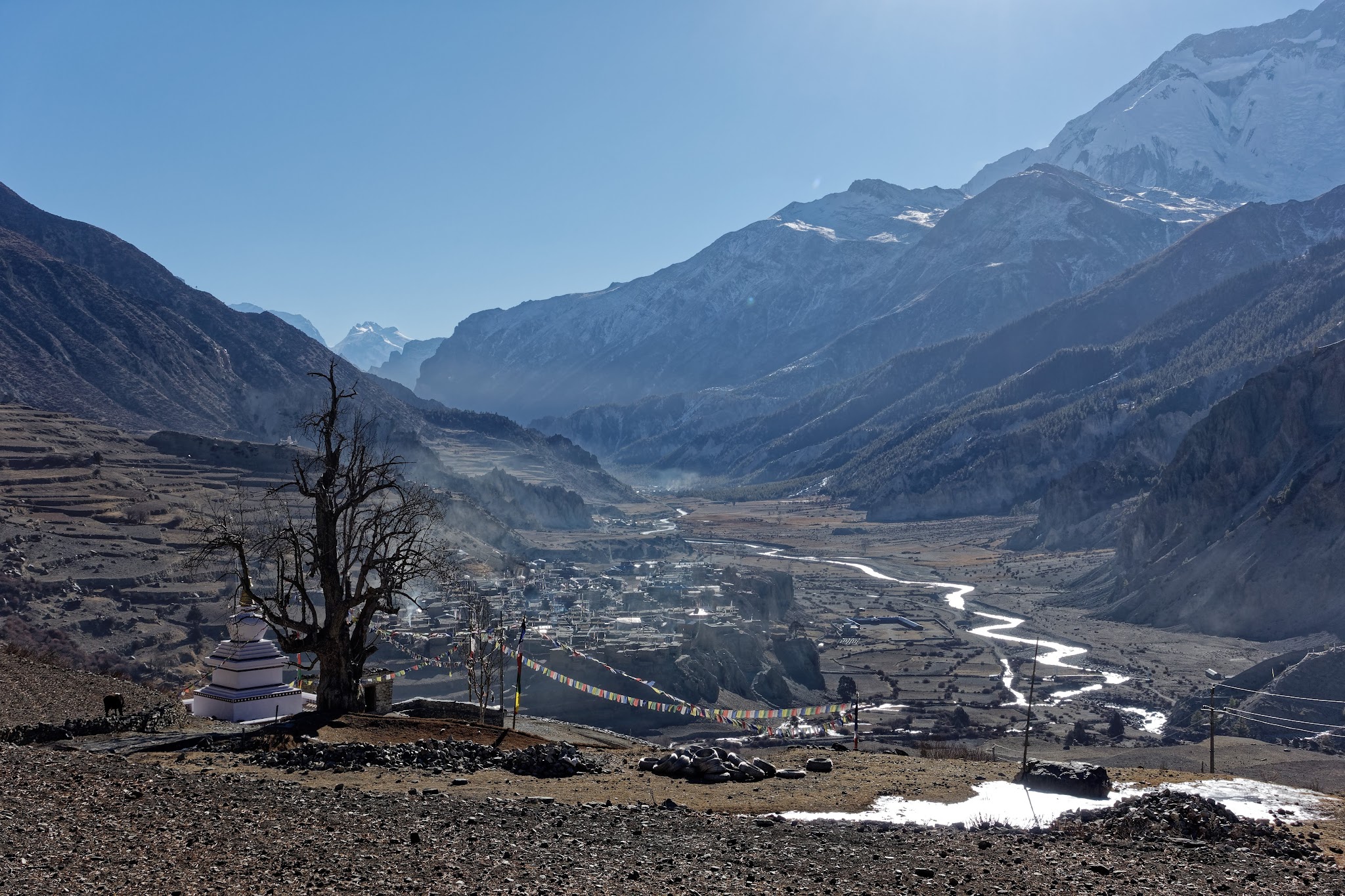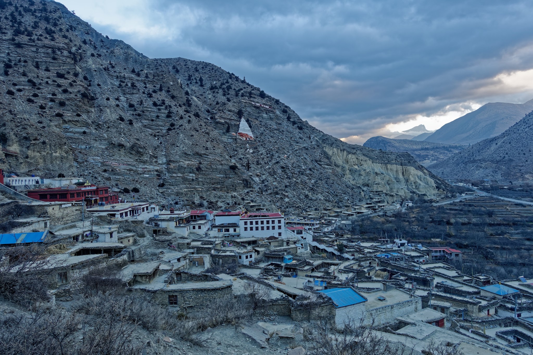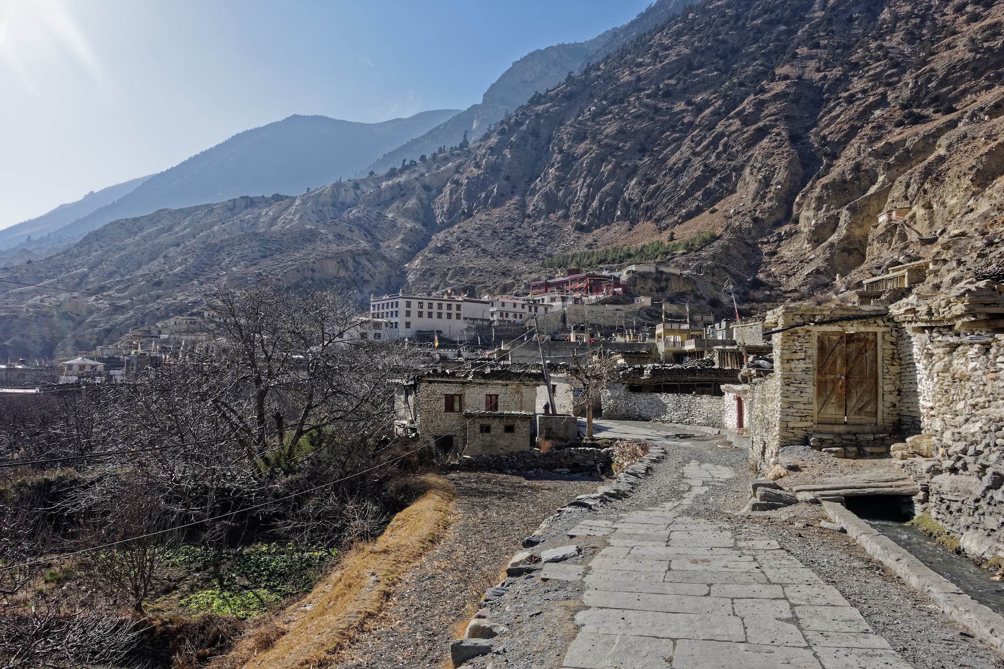 Muktinath to Marpha, the apple capital of Nepal. Dominating the village is the Nyingma monastery.