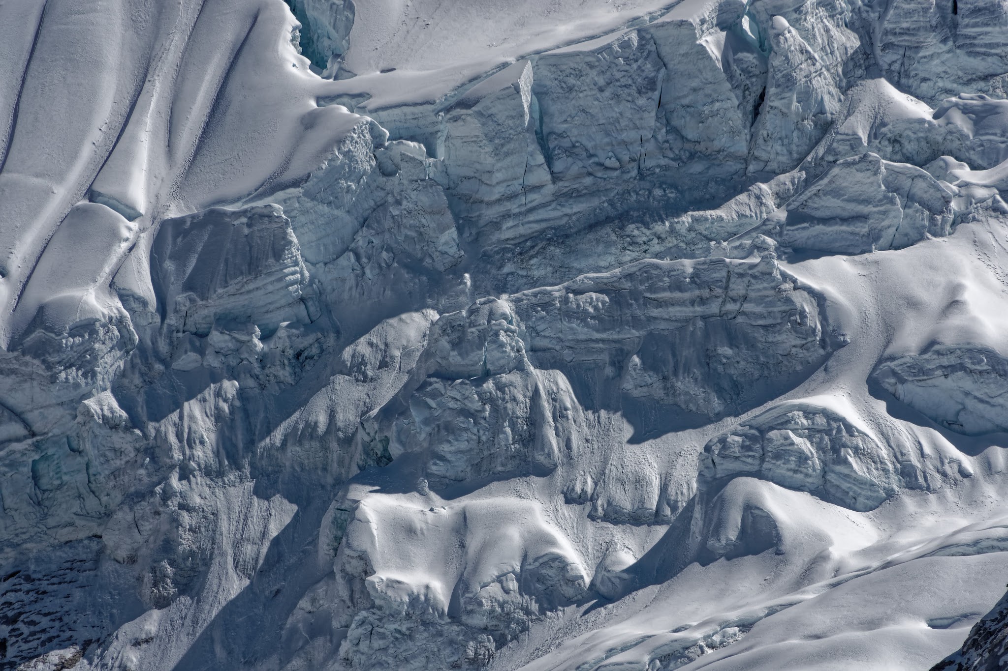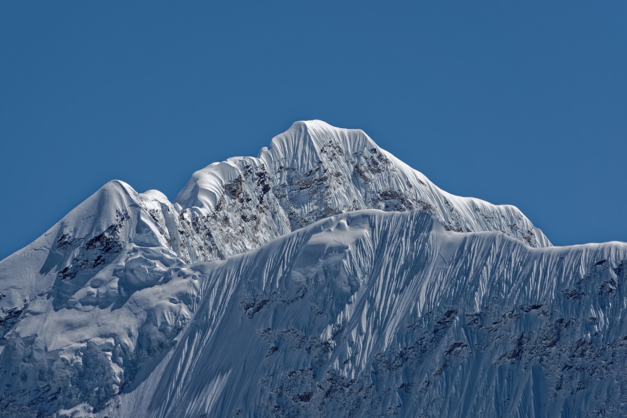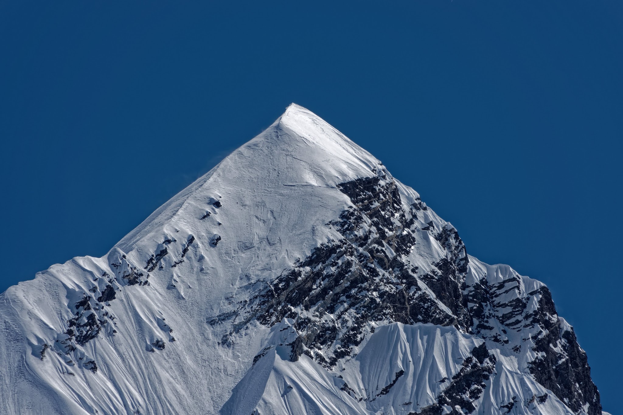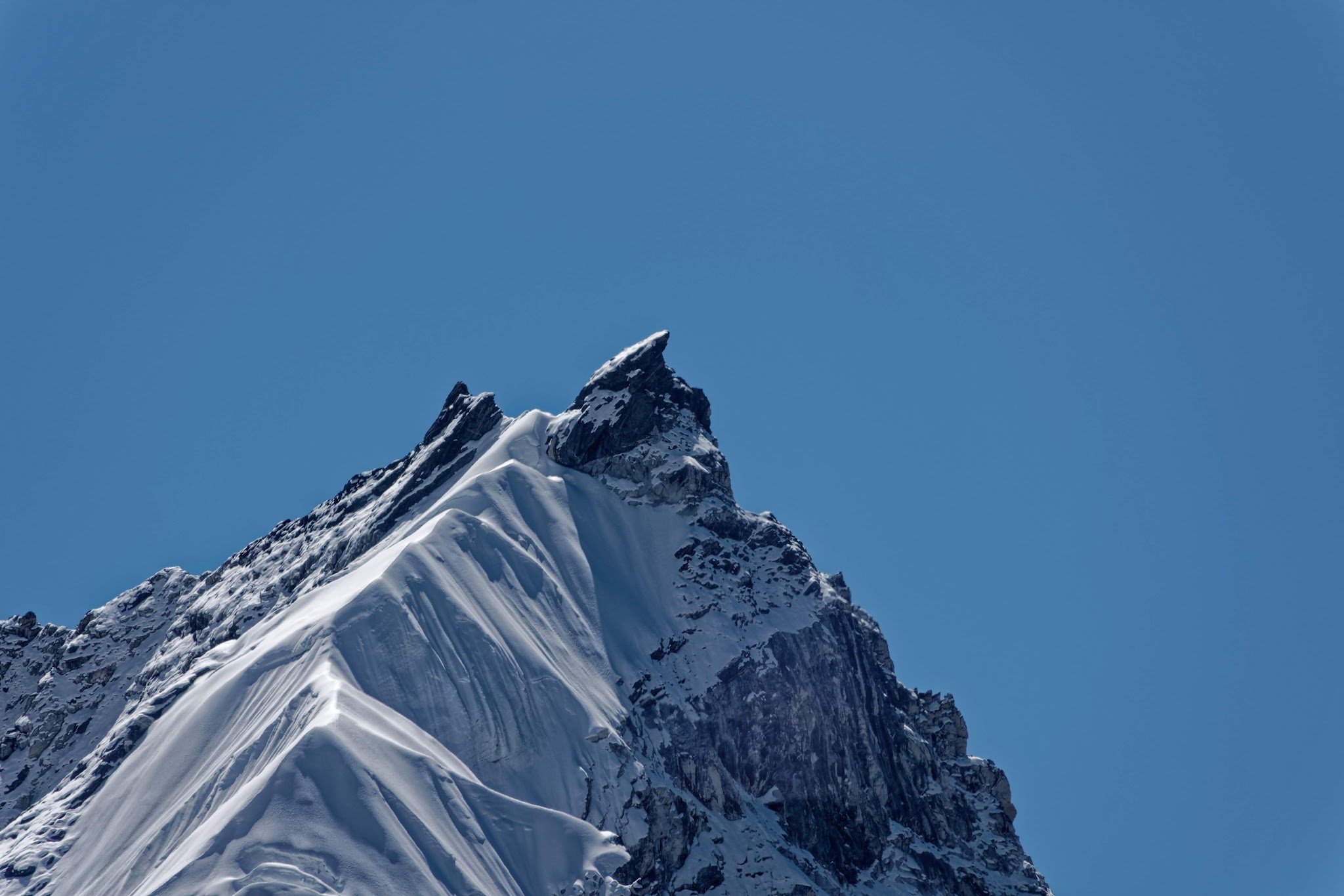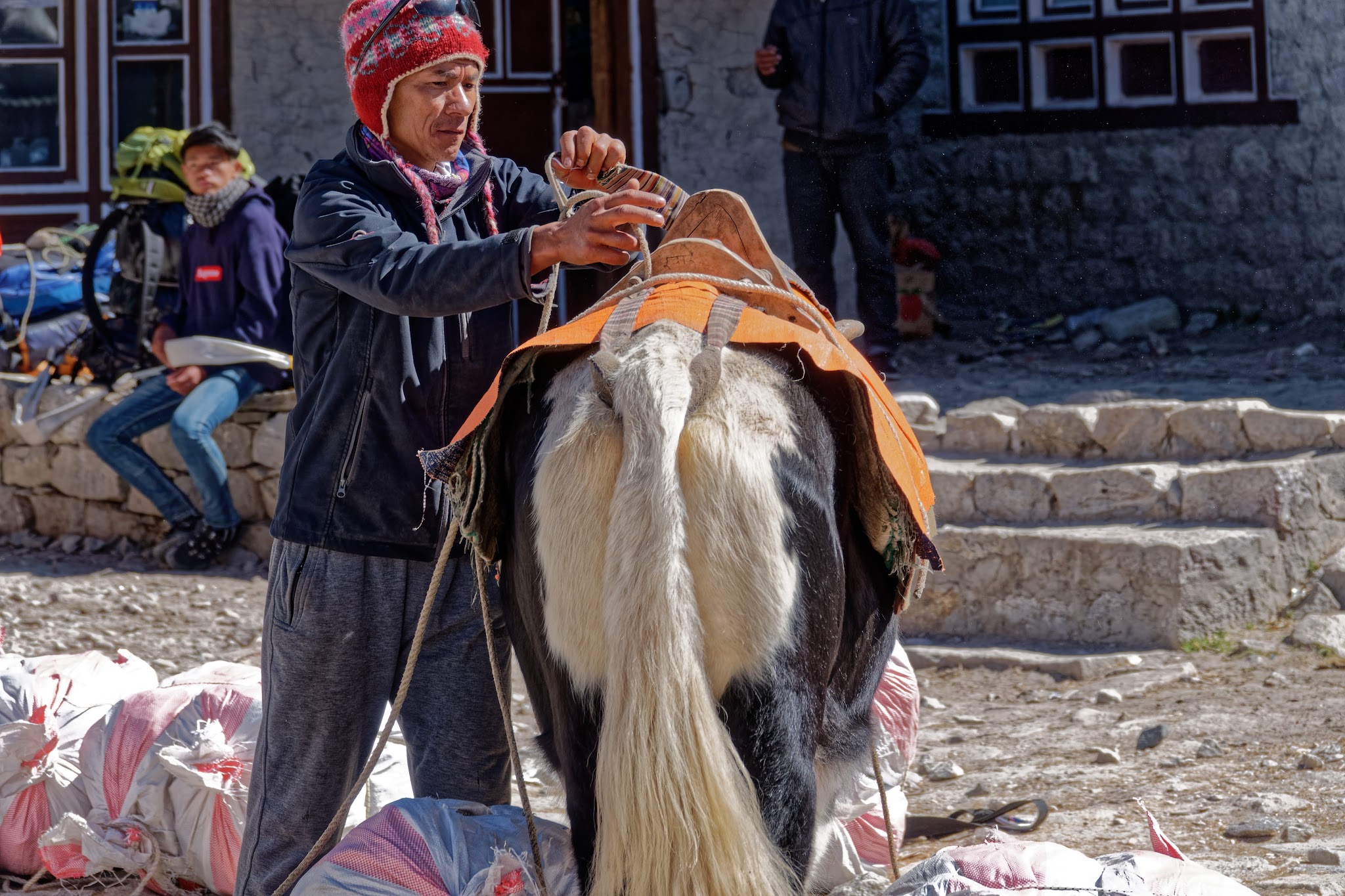 The trail curves around the hillside above Bibre and then climbs along the east side of the Niyang Khola Valley, beneath a menacing wall of black rock. At the head of the valley, the path swings west, scrabbling its way up a steep slope littered with boulders. Snow often lingers on this north-facing slope, making it tricky to find the icy trail.