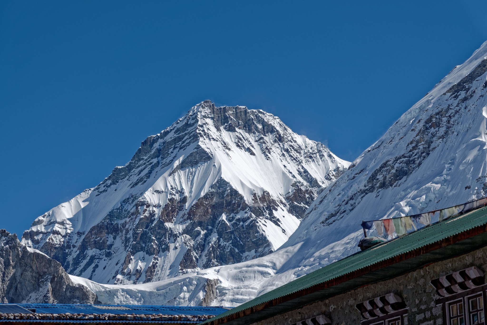 Khumbu glacier and Thamserku in the middle, Taboche to the right.