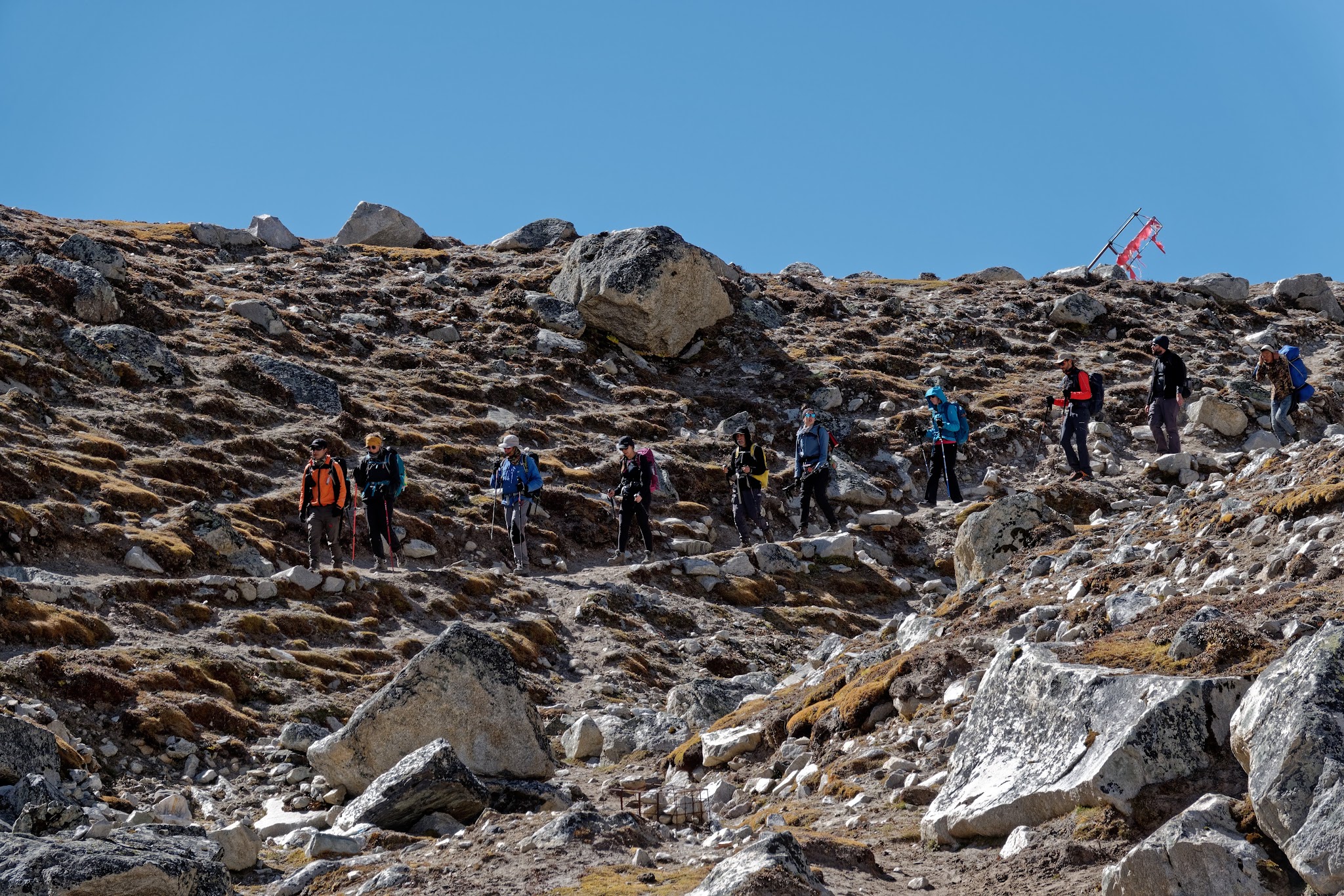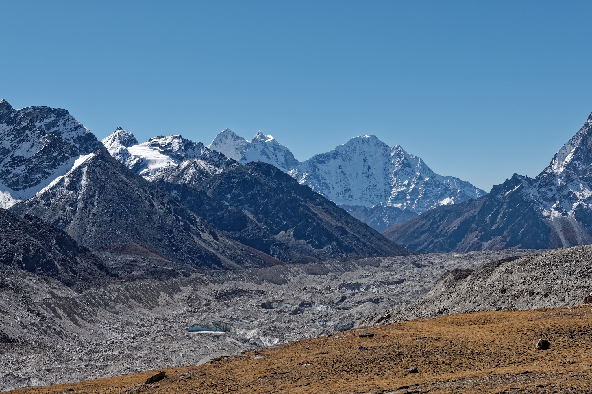 There are no facilities along the way and not much water, so bring a packed lunch from your lodge in Chhukung and fill your water bottle when you can. The trail climbs the hill diagonally northwest of the Chhukung Resort over the outflows of the Nuptse Glacier. The first five minutes are confusing so ask your lodge for directions to the start of the path. On the first stage of the trek, there are great views back across the valley to Island Peak and the jagged ridge of Amphu Lapcha.