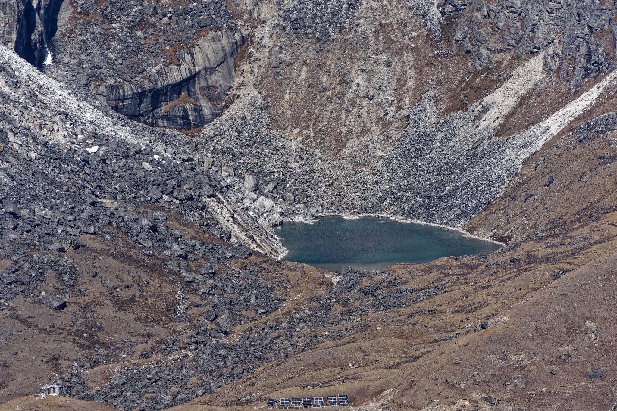 Small Lake above Lobuche, solar panels and solar heaters are used widely.