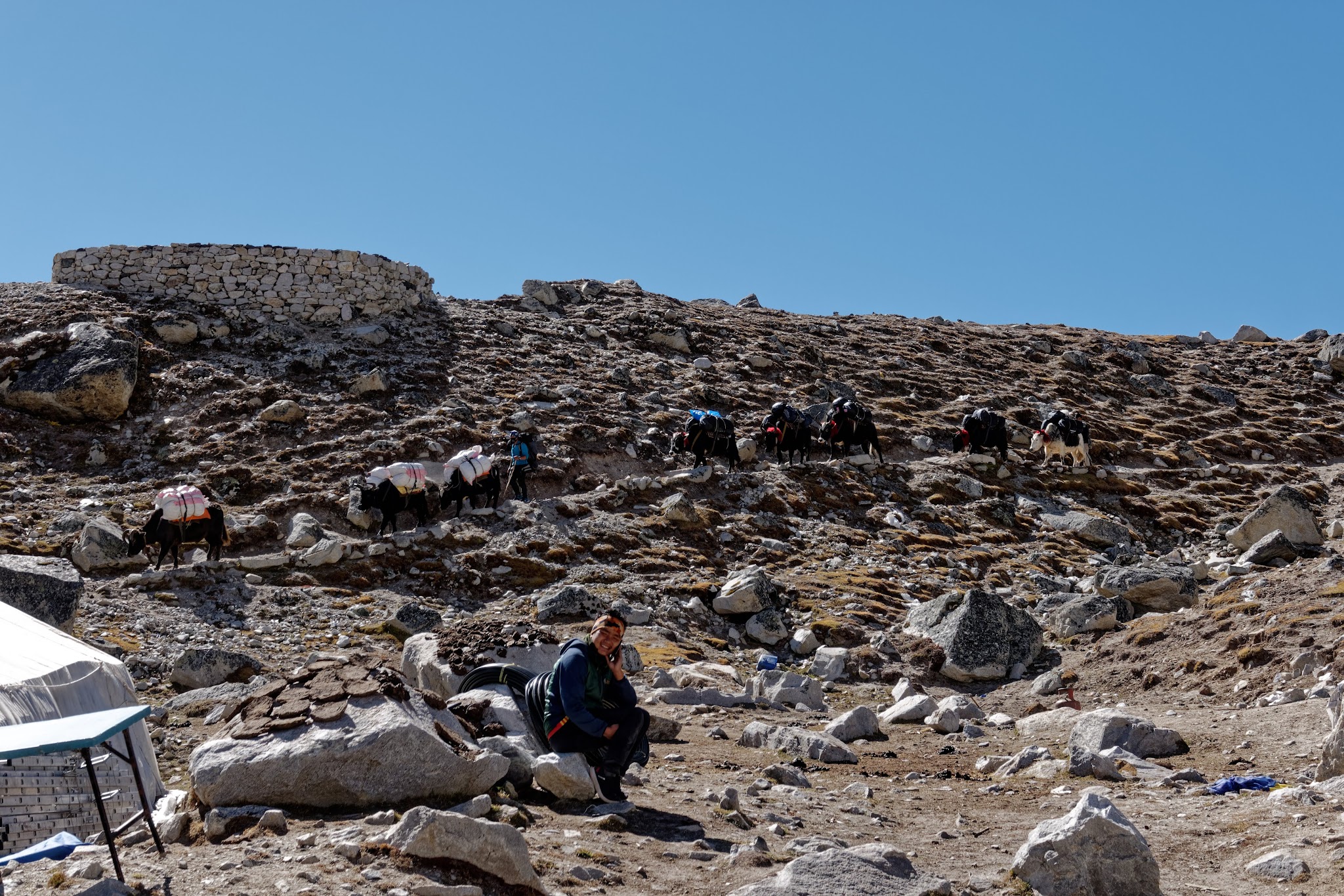 I stayed for two nights in Lobuche and made a day trip to Gorak Shep (2,5h) and Kala Patthar, another 2h and was not alone as you can see, but I did not have to look for accommodation with all the EBC trekkers, but most of them have guides, porters and flock together in groups.